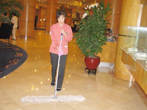 9、 對大廳地面的地廳子進行內外徹底清刷,保持光亮。